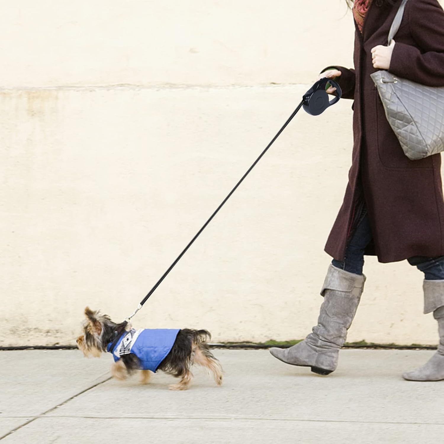 Choose between 10ft (Small) or 16.4ft (Large) lengths to suit your dog’s walking style. The flat ribbon smoothly extends and retracts, giving your pet more freedom to explore — while you stay in control with just a flick of your thumb. 🦮🌀 Select the appropriate leash length, either 10ft (Small) or 16.4ft (Large), based on your dog's preference. The flat ribbon design allows for smooth extension and retraction, providing your pet with ample room to roam while enabling you to maintain control effortlessly.